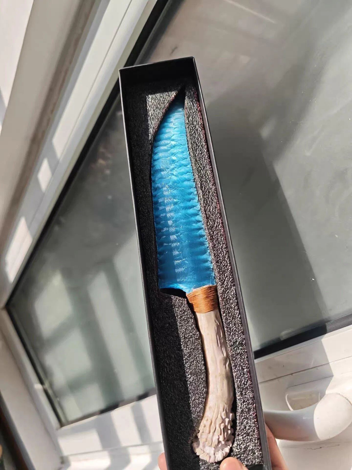 • Forged from Glacial Ice: Crafted from translucent Cyan Ice Obsidian, this blade looks exactly like a shard of ice carved from a frozen waterfall. It feels cold, sharp, and impossibly clear.