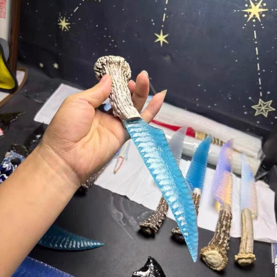 • King of the North Aesthetic: The contrast is brutal and beautiful—the sleek, futuristic ice blade fused with a rugged, gnarly Genuine Stag Antler handle. It feels like a relic carried by a Viking Jarl or a Ranger of the North.